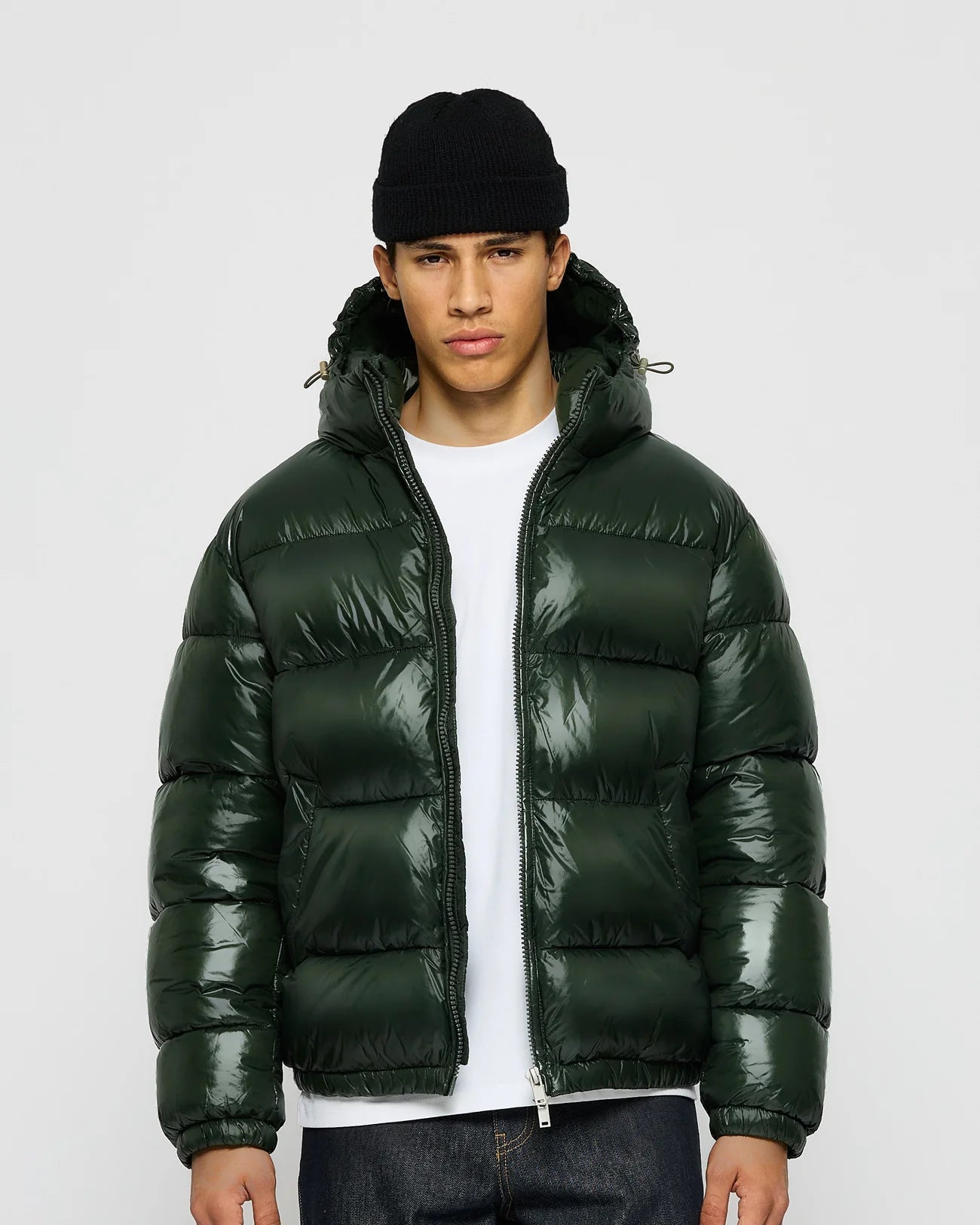 Unsere Puffer Jacke gibt es in zwei Farben – klassischem Schwarz und modernem Navi Grün – und in den Größen S bis XXL.